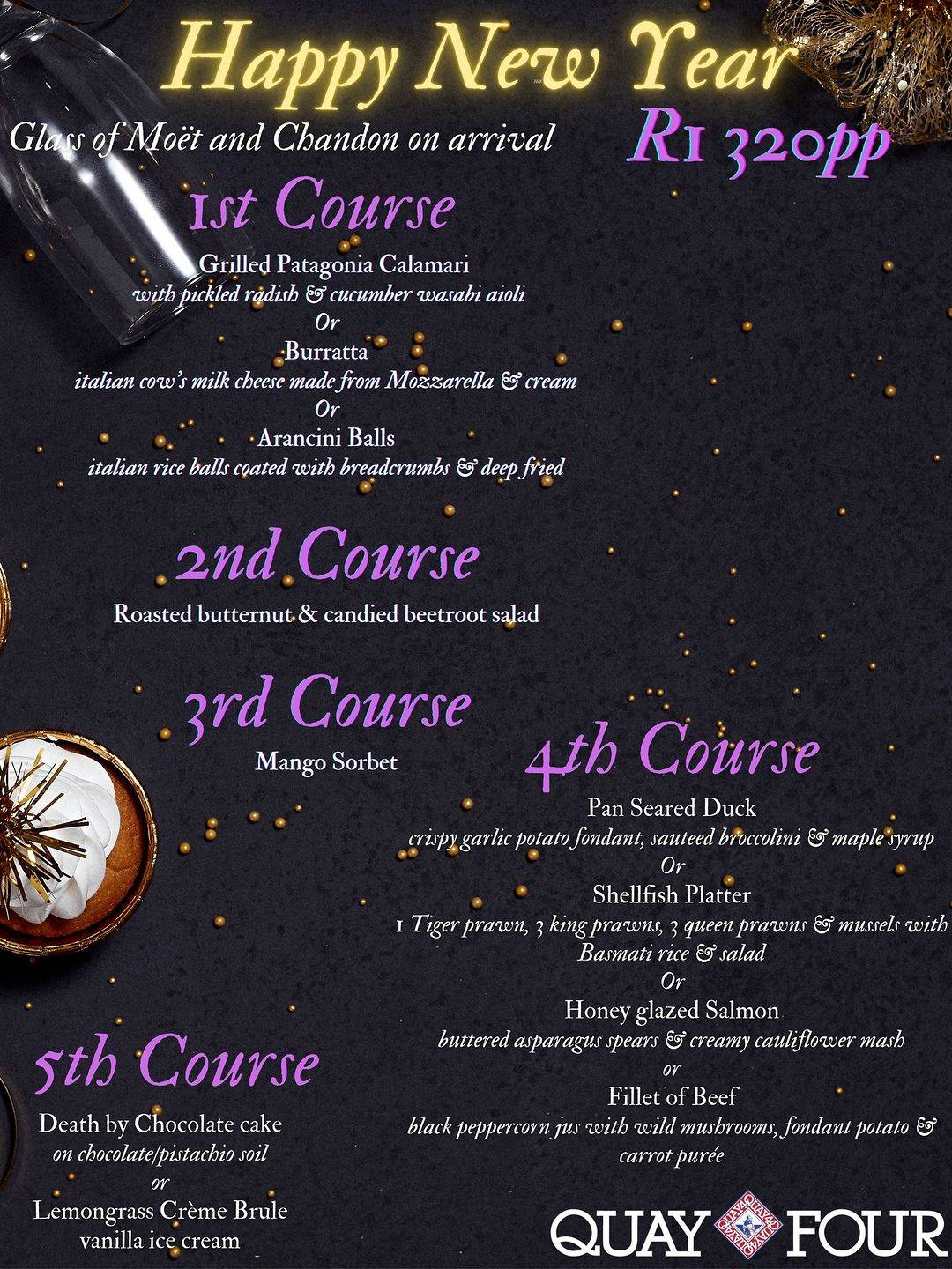 Celebrate the New Year in style at Quay 4! Secure your reservation by emailing us at info@quay4.co.za and let’s bid adieu to 2023 with a culinary journey you won’t forget.