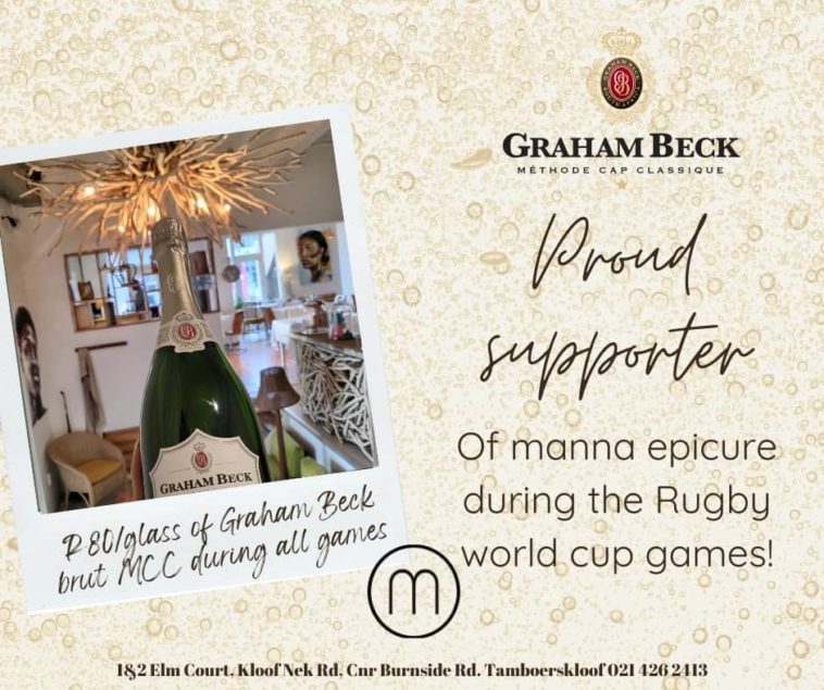 - During all Rugby World Cup games, Manna Epicure is offering a glass of Graham Beck Brut MCC for just R80. This sparkling wine is the perfect companion for those looking to savor a moment of tranquility and elegance while the world watches the rugby battles unfold.
