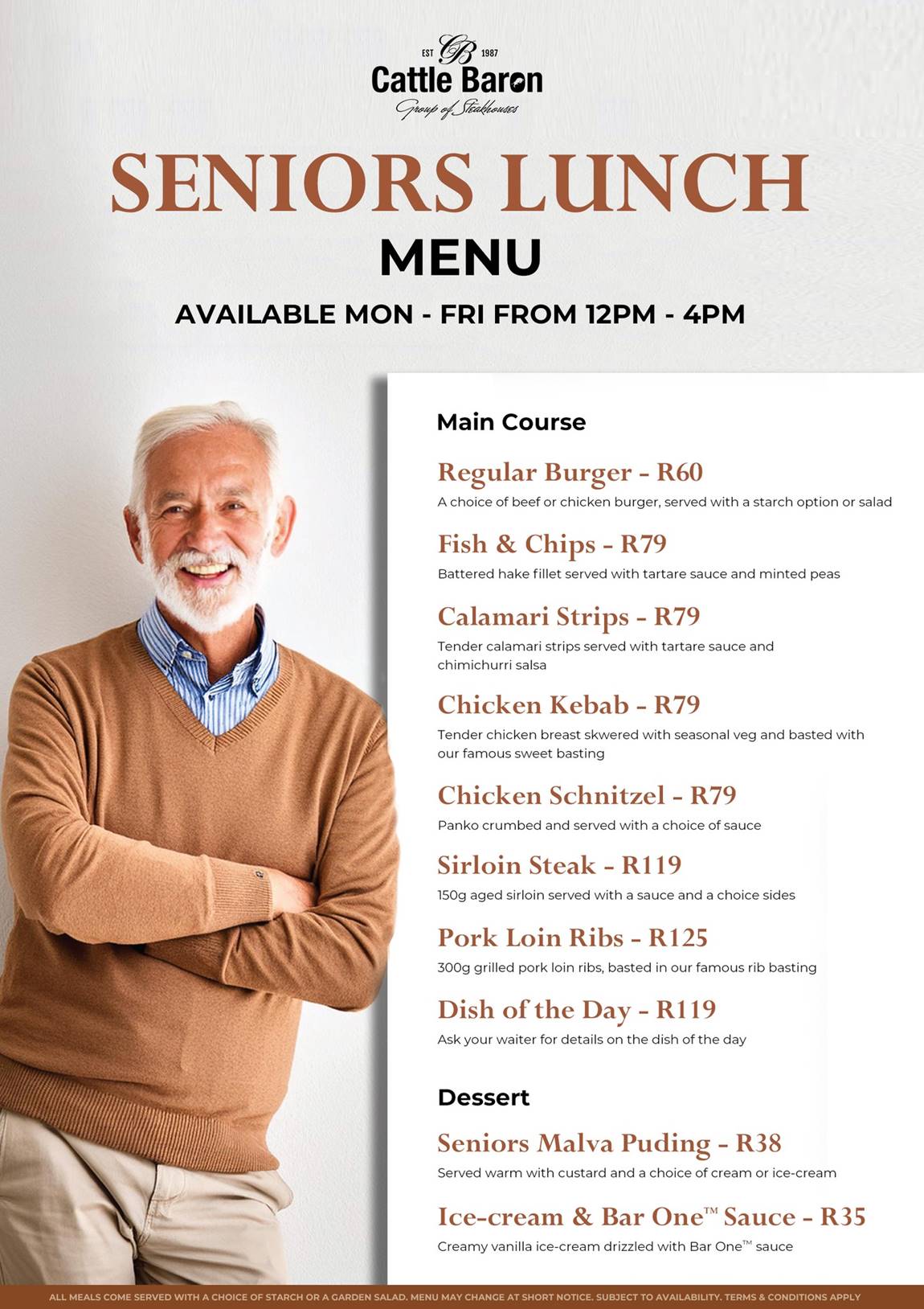Seniors’ Lunch Specials at Cattle Baron Plattekloof