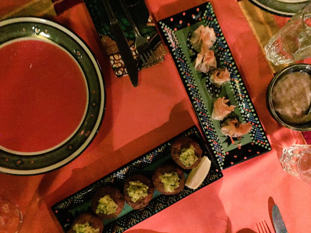 I thought that a briouat was like a paper-thin samoosa, but there were little parcels, not triangles. Filled with a mixture of spices and beans, they were hot, crisp and crunchy.