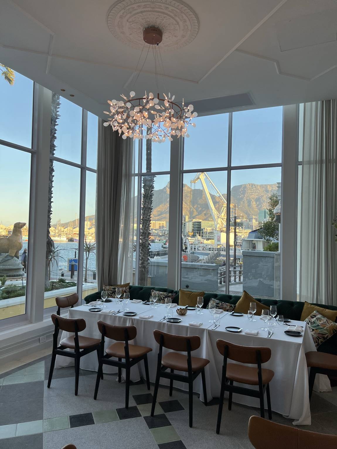 The new lightweight steel and glass structure does not detract from the views. Previously, the outdoor patio space was only ever been functional in favourable weather, so a decision was taken to incorporate the space into the restaurant. Diners can now enjoy an extraordinary fine dining experience while taking in views of the jetty and boats moving in and out of the V&A Waterfront.