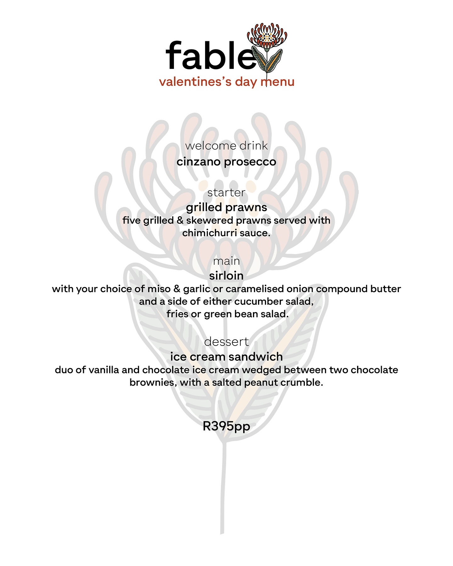 A Culinary Love Story For R395 per person, fable presents a delightful three-course dining experience that’s sure to captivate every palate: