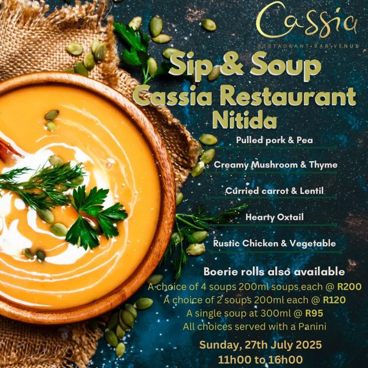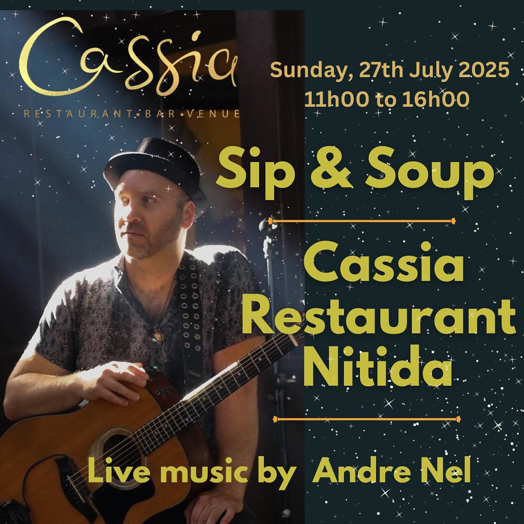 🎶 And just when you think it couldn’t get any cozier, Andre Nel will be setting the tone with live acoustic tunes that pair perfectly with Pinotage. Whether you’re a foodie chasing rich winter flavours, a wine lover looking for your next bottle, or just someone who loves a long, lazy lunch — Cassia’s Sip & Soup Sunday is your new happy place.