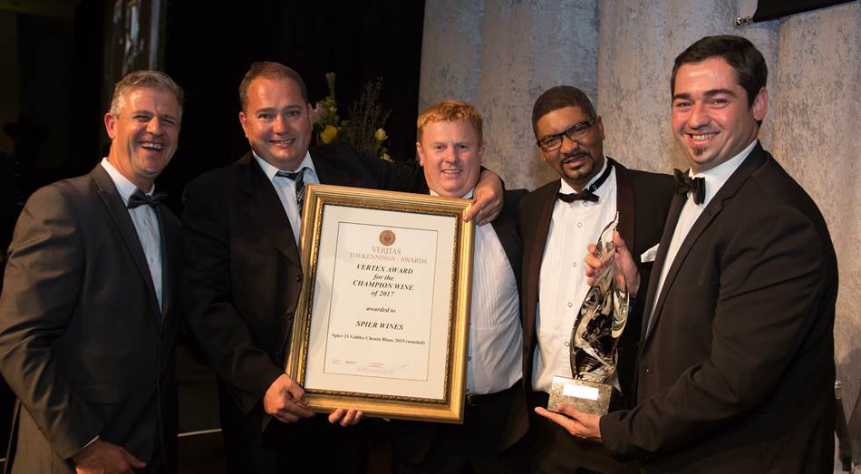 The Veritas Vertex Award takes its name from the Latin word “vertex” – meaning “highest point” – alluding to the pinnacle of achievement that the award represents. A specially-designed handmade glass trophy was presented to Spier cellar master Frans Smit and his team at the Cape Town International Convention Centre.