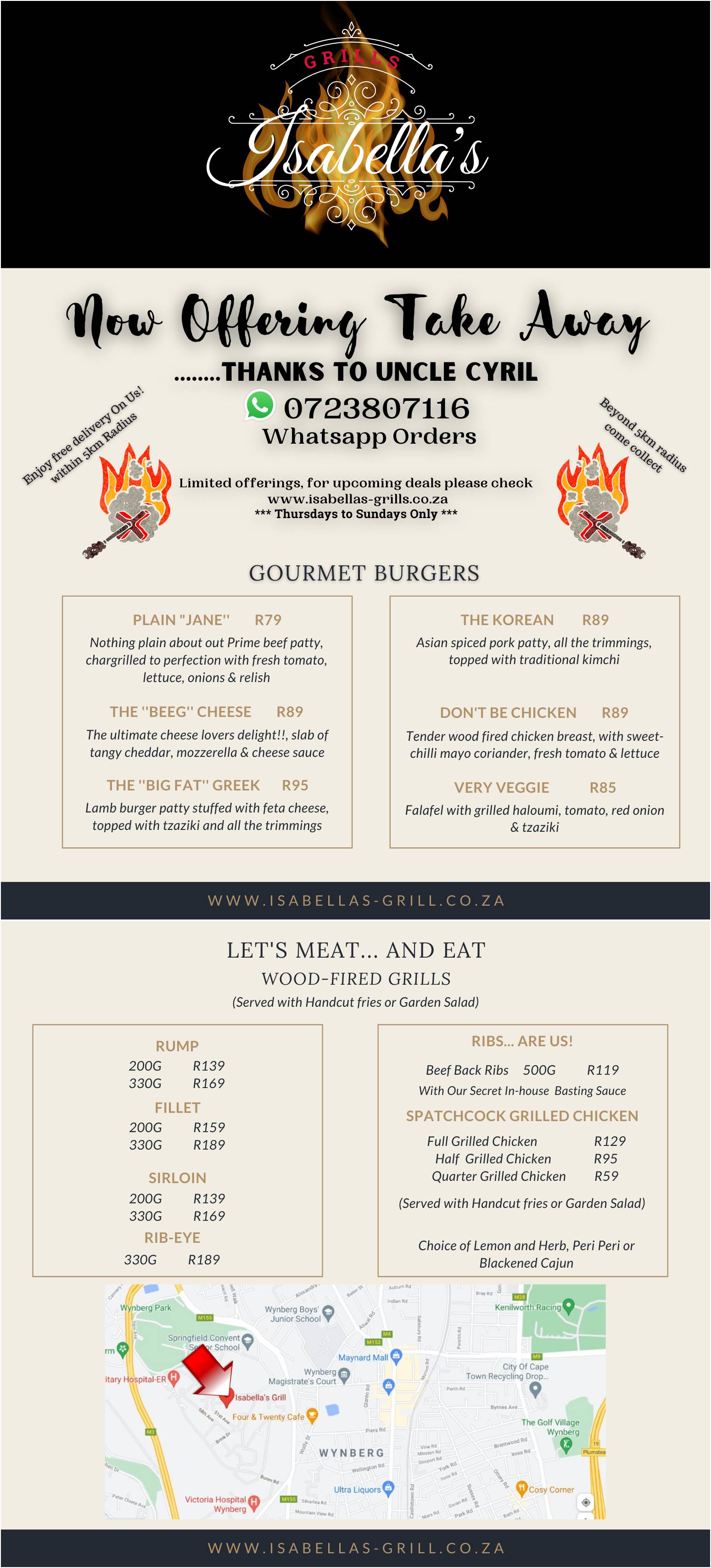 Isabella’s Grills is now offering a fantastic take-away & delivery menu!