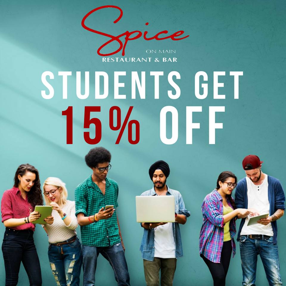 Spice on Main understands that students are on a tight budget! That’s why they’ve introduced a special to make things a little easier…