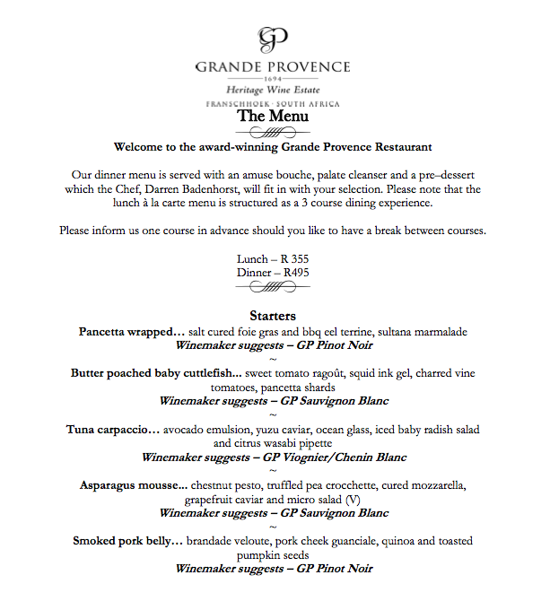 For more information visit www.grandeprovence.co.za, Facebook or Twitter
