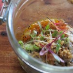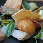 Rillettes, parfait, pistachio crumble, truffle dressing, apricot and saffron chutney