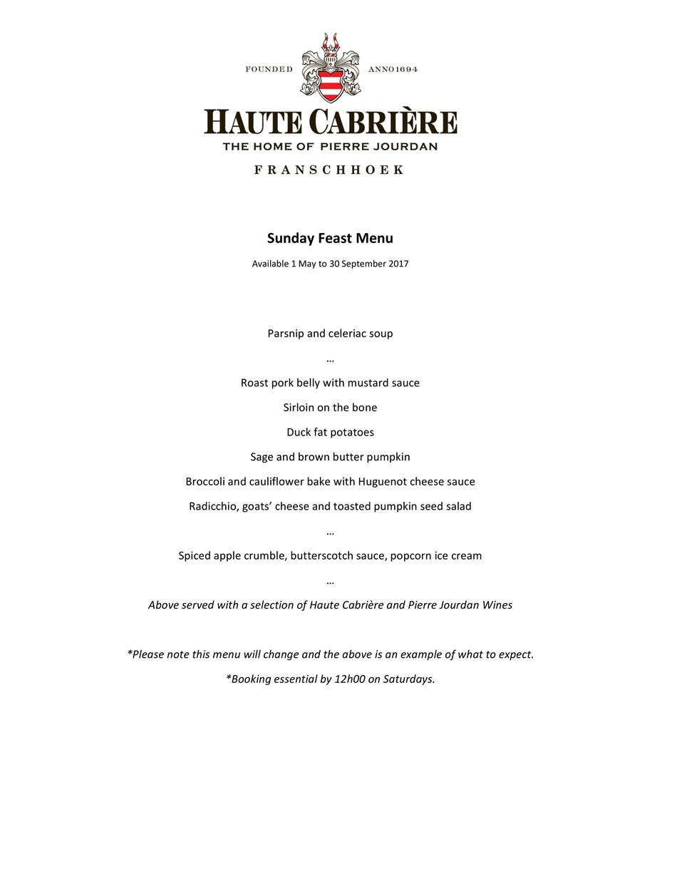 Franschhoek Restaurant News Franschhoek Restaurant Specials Haute Cabriere News Sunday Restaurant Specials Cape Town 2025 Sunday Restaurant Specials Cape Winelands Sunday Restaurant Specials Franschhoek