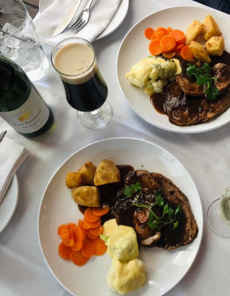 Roast lamb, cheese sauce, broccoli and cauliflower with crispy potatoes and the famous Barristers gravy
