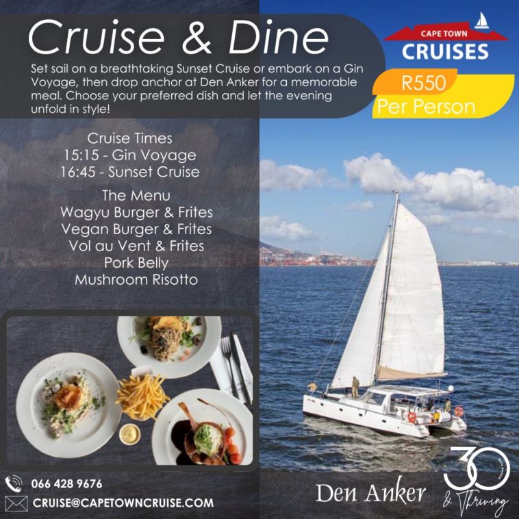 Den Anker has teamed up with Cape Town Cruises to bring you a Date Night combo that’s equal parts romantic, scenic, and delicious.