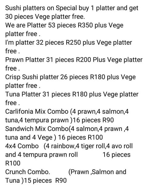 Sushi Platter Specials at Imperial Gardens Restaurant