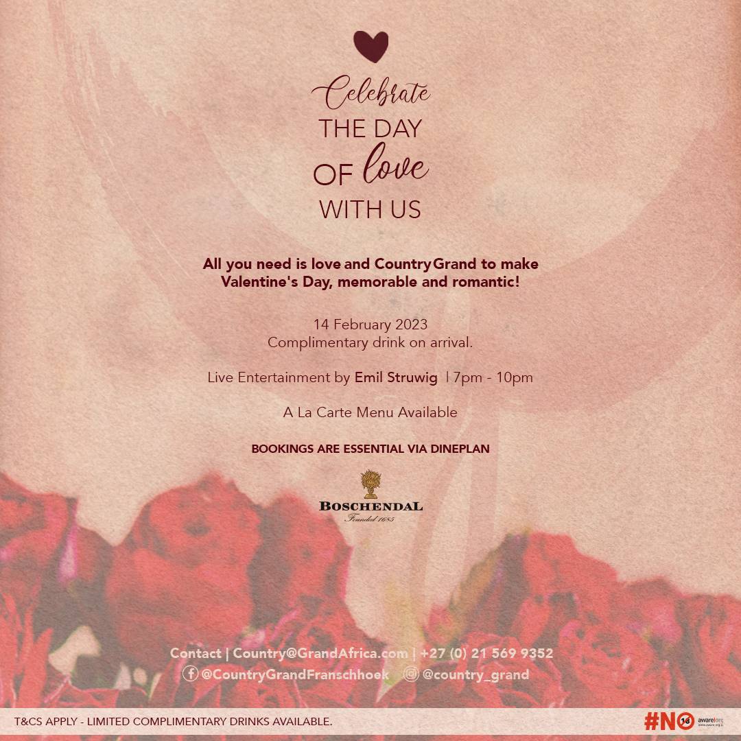 Whether you’re a local or just visiting the Franschhoek area, make sure to book your table at the Country Grand and experience the ultimate Valentine’s Day celebration.