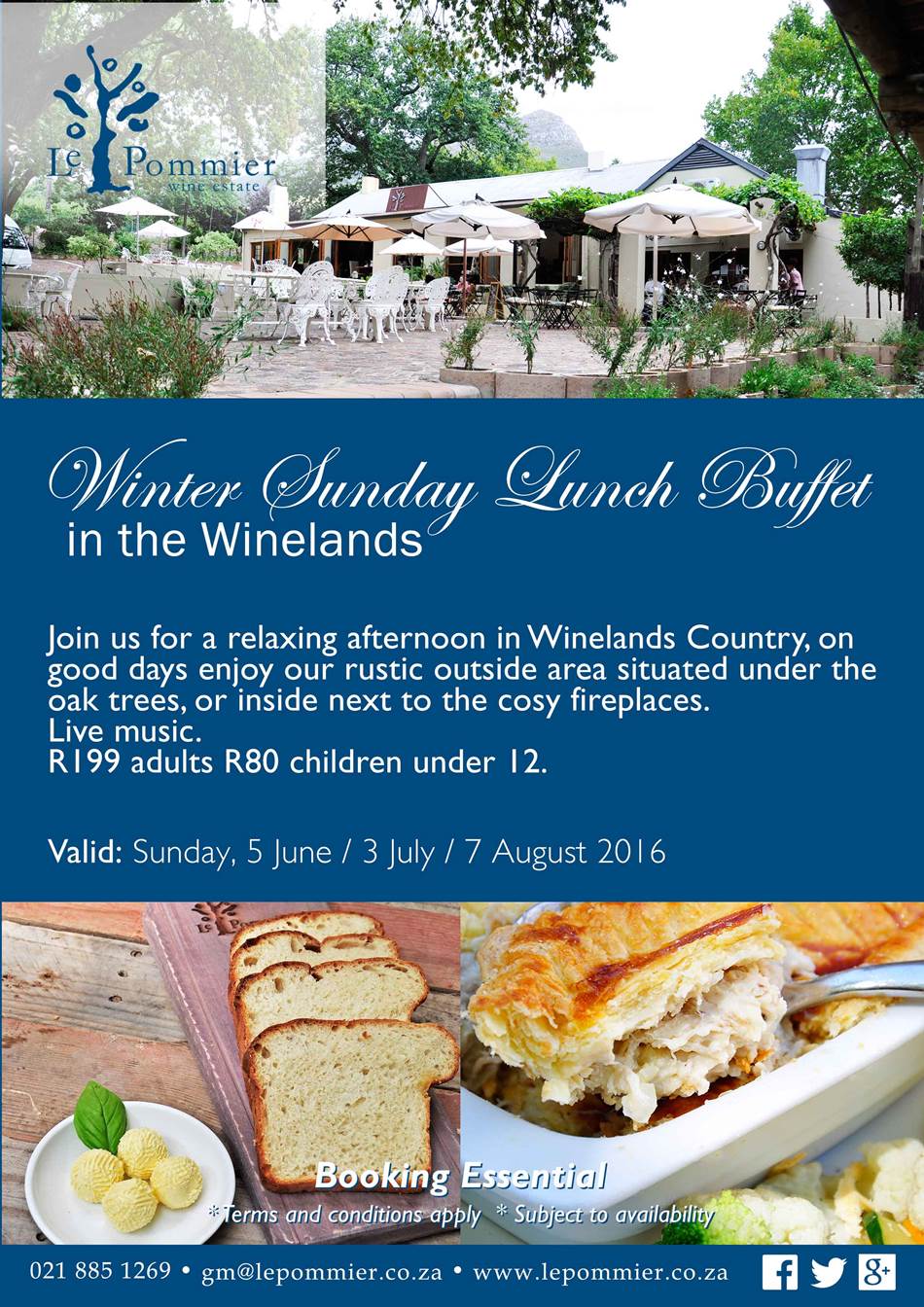 Join Le Pommier for a traditional Autumn Special! Eat the winter blue away with two course traditional meal at this popular Stellenbosch Wine Estate. Choose between Bobotie, Chicken Pie or a Chicken Malay Curry as your main while ice-cream & chocolate sauce or a Malva Pudding with custard are your options for dessert! This special […] More