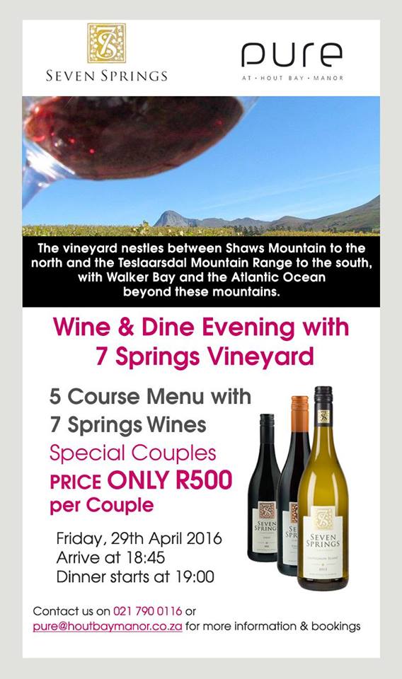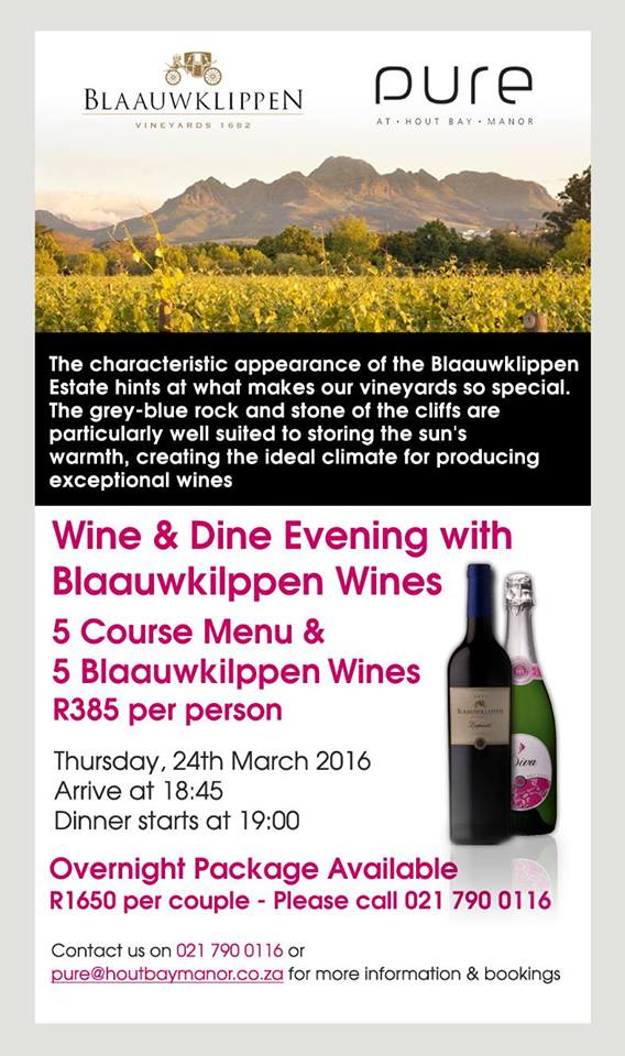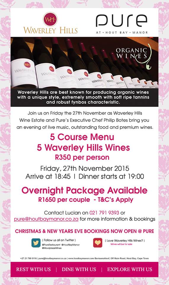 5 courses. 5 wines. An evening of pure bliss at Pure Restaurant! Join the restaurant on Friday, the 28th of April as Ernie Els Wines and Pure’s executive chef Ricardo Watson brings you an evening of premium wines, outstanding food and live music. The 5 course menu including wines is available for only R425 per […] More