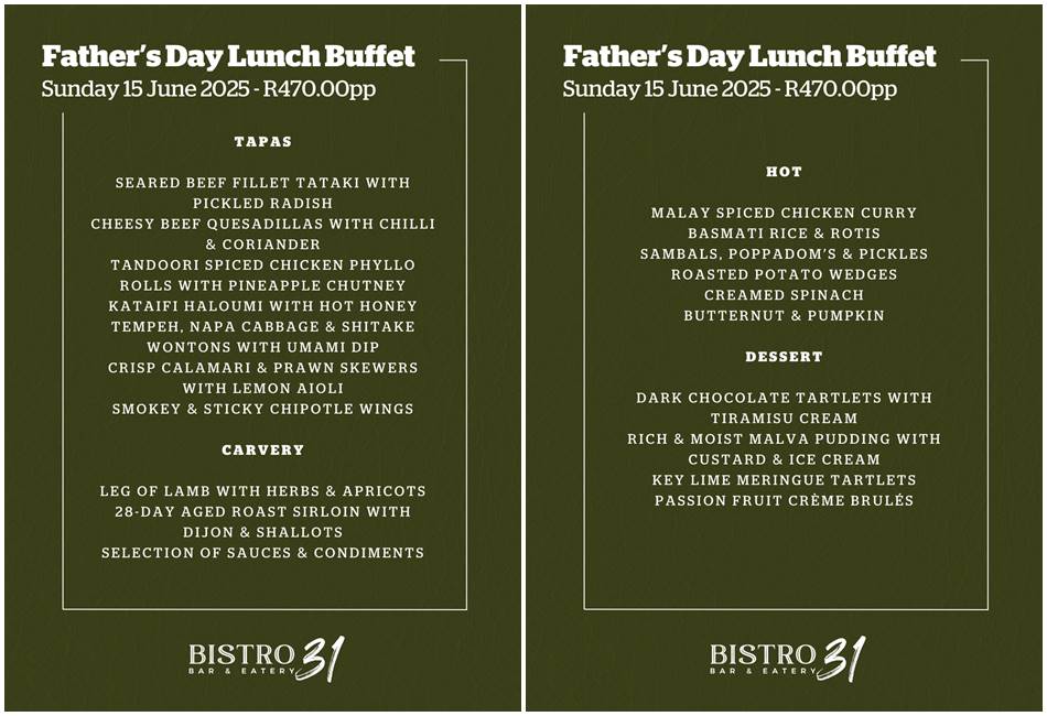 Bistro 31 is rolling out the red carpet (and a seriously impressive buffet) on Sunday, 15 June 2025, and it’s got “Dad-approved” written all over it.