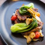 Potato Purée, Pak Choy, Brown Mushrooms, Artichokes, Chilli-Soy & Truffle Butter