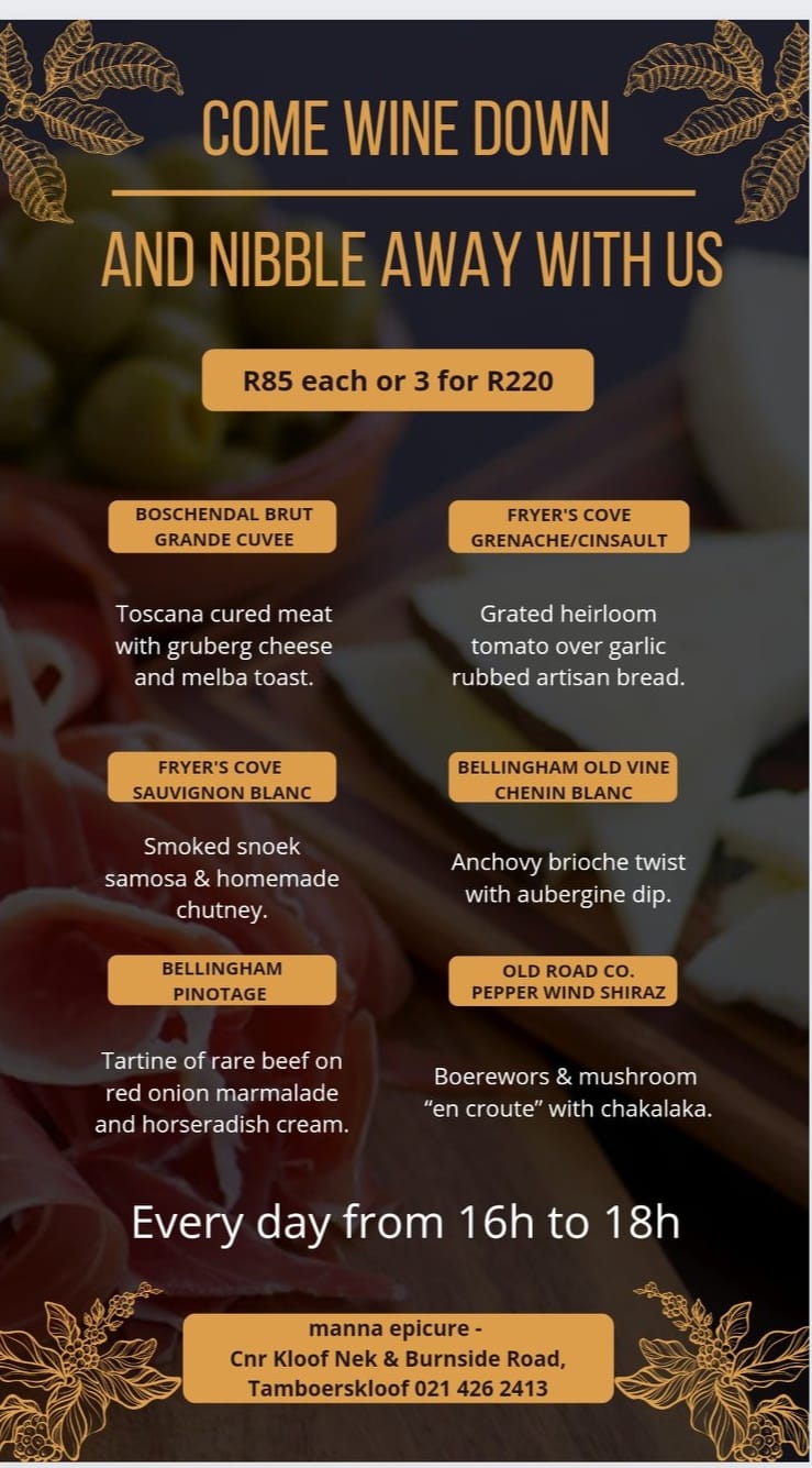 Manna Epicure focusses on French-South African fusion that is created with lots of passion. You can expect wholesome food prepared with quality ingredients, handcrafted artisan bread in an inspiring atmosphere. Their latest tapas and wine offering brings you a fantastic experience that allows you to wine down after a long day.