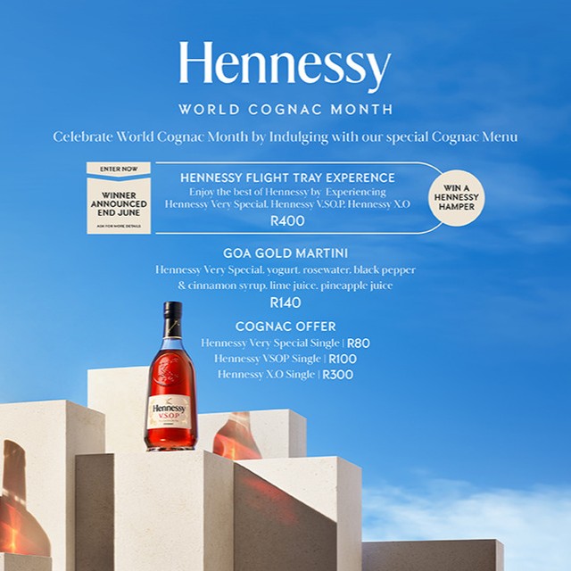 - For those looking to try something unique, the Goa Gold Martini is a must. Priced at R140, this cocktail combines Hennessy Very Special with yogurt, rosewater, black pepper & cinnamon syrup, lime juice, and pineapple juice, creating a delightful blend of flavors that’s both refreshing and sophisticated.