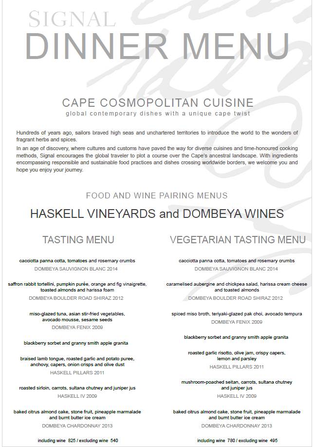 The pairing menu, which will change periodically, along with the invited participating wine estates, started this month with Dombeya and Haskell wines, both of which hail from the Stellenbosch region.