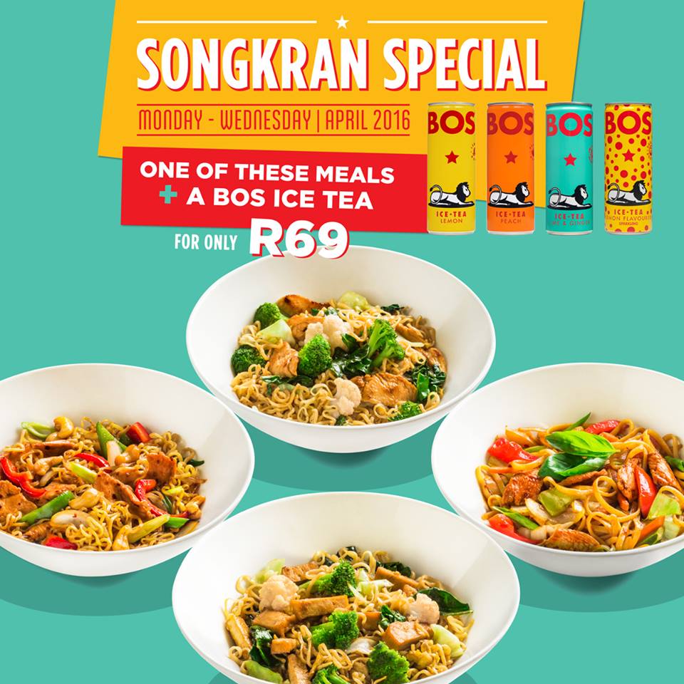When you order the Songkran Special at any of the Simply Asia stores nationwide every Monday to Wednesdays, you’ll receive 1 of 4 delicious Songkran Noodle dishes plus a BOS Ice Tea for only R69! But that’s not all – you’ll also help feed hungry children!