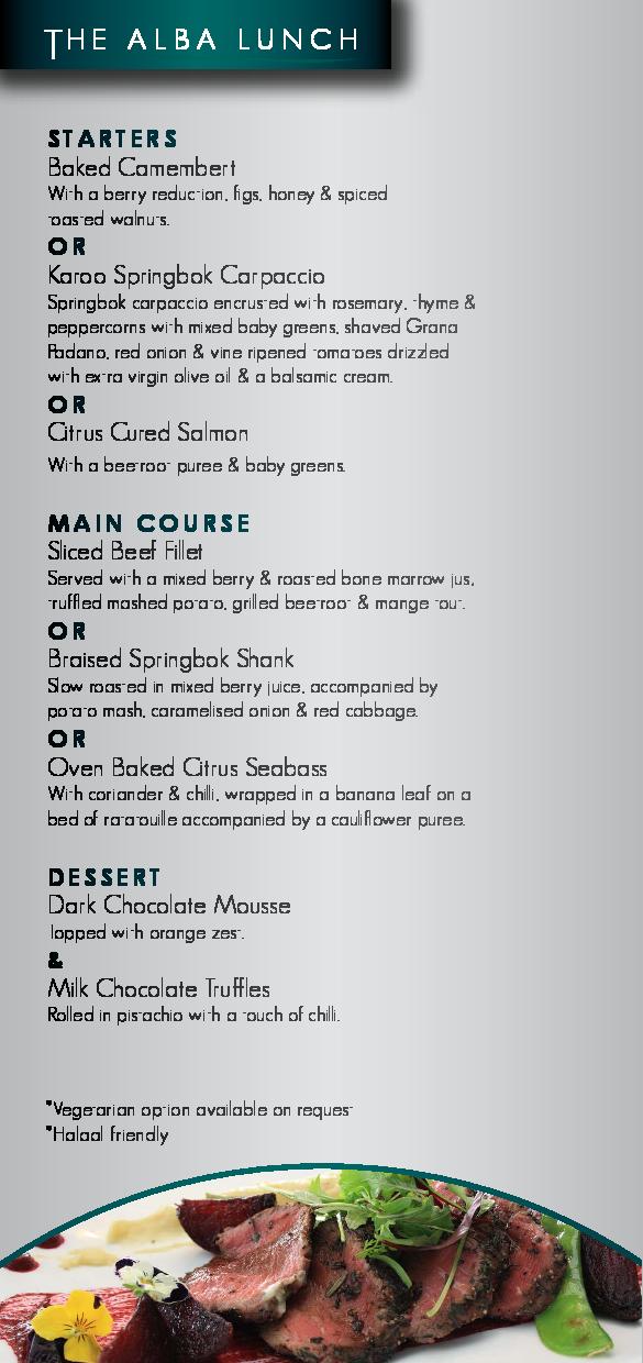 See our competition post and use the comment section to name the person that will be joining you on your floating lunch cruise on The Alba.
