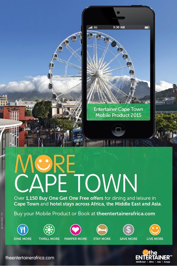 The Entertainer is proud to announce the launch of the Entertainer Cape Town 2015, with over 900 Buy One Get One Free offers for the best restaurants, nightspots, leisure, attractions and salons in Cape Town. Offering customers up to ZAR 800,000 in savings, the Entertainer Cape Town 2015 is the biggest and best yet.