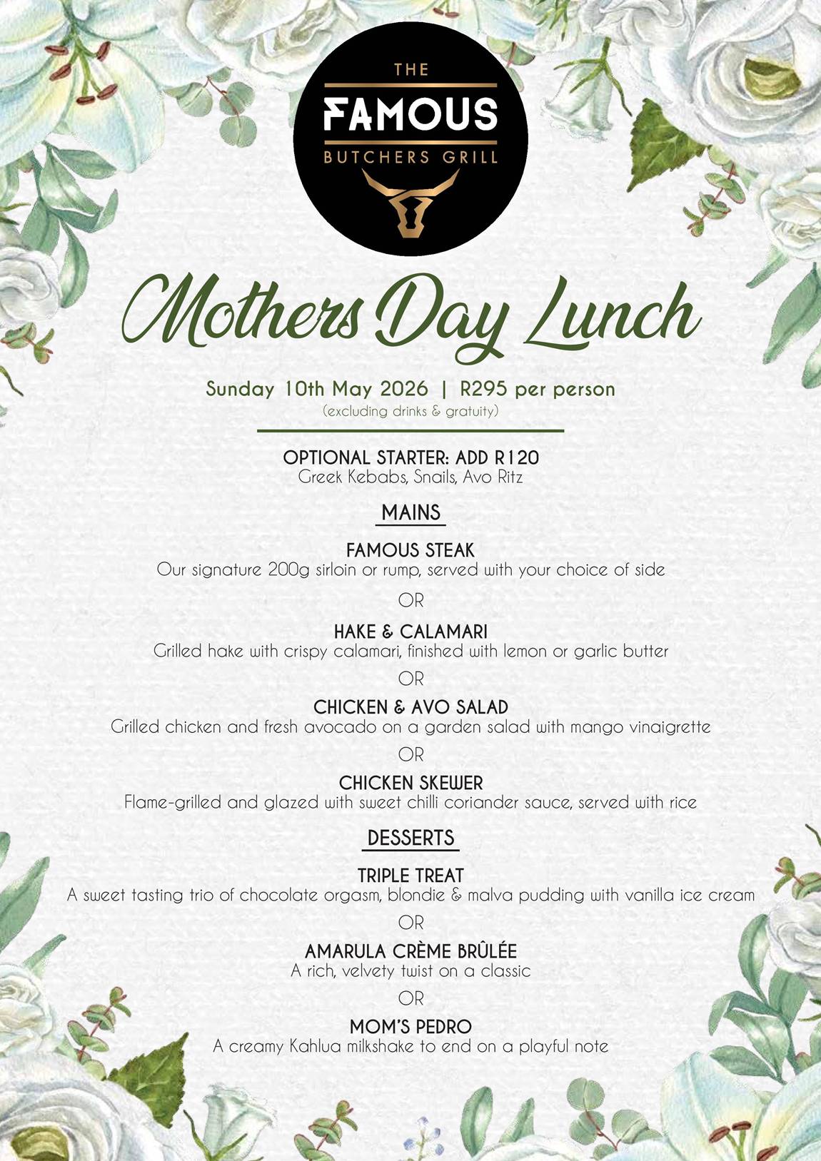 At The Famous Butchers Grill, Mother’s Day is kept simple, generous, and firmly focused on flavour.