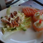 My companion and I decided to go halvies; my favourite game because then I have a free pass to taste everything. We ordered one Love Roll, which start at R45 and one salad platter, where you choose 6 tasters from the salad bar for R40.
