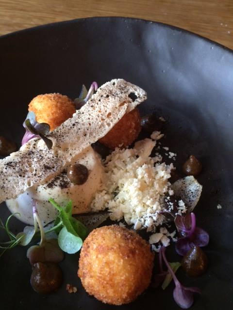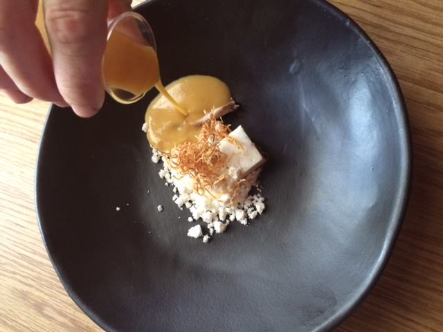 Truffle emulsion, crushed potatoes, mushroom soil and ponzu gel