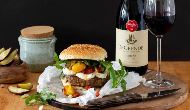 - Remove from the heat and start assembling your burgers. Add the steak followed by the mozzarella, tomatoes, gherkins, jalapenos and then the wild rocket. Serve immediately with sweet potato chips and De Grendel Shiraz.