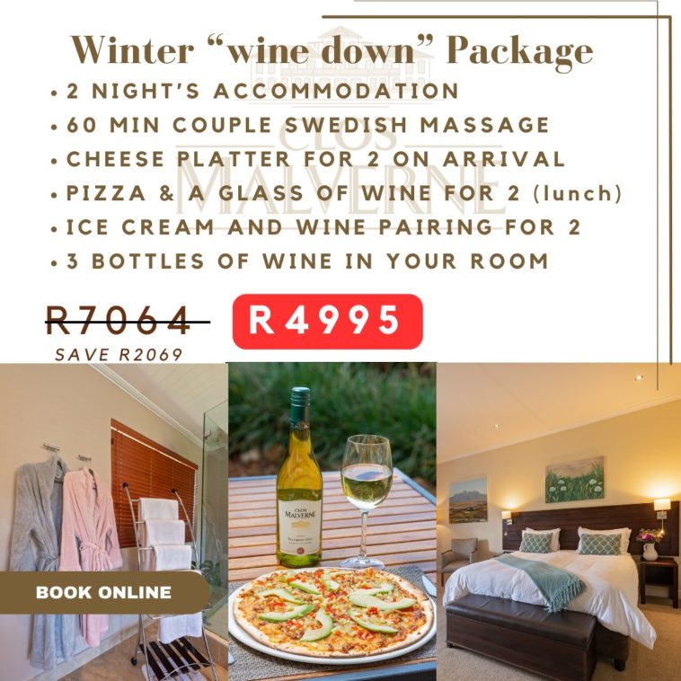 There are winter getaways… and then there’s Clos Malverne’s “Wine Down” Package – a full-on pamperfest in the heart of Stellenbosch that brings the heat, the wine, and the weekend goals.