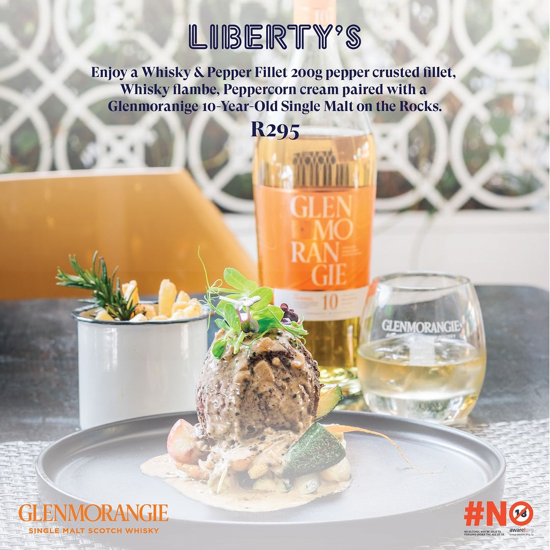 The true connoisseur’s experience extends beyond the plate as Liberty’s offers a fantastic pairing – the Glenmorangie 10-year-old Single Malt on the Rocks. The smoky, complex notes of this Scotch whisky complement the robust flavors of the fillet, creating a harmonious union that dances on your taste buds.
