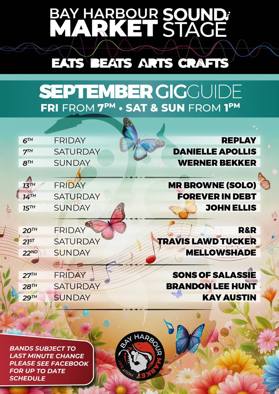 Bay Harbour Market, a vibrant hub of culture and creativity, is thrilled to announce an exciting September Spring lineup of local muso’s who will be taking the stage in the coming weeks.