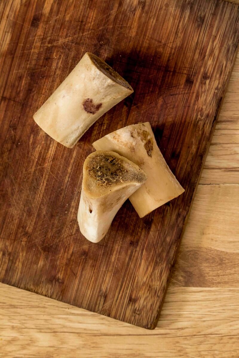 - A hollow marrow bone filled with liver biltong infused peanut butter. Extremely good for dental health due to the long chewing process to get to the delicious center. Bones naturally softened to prevent splintering. Added peanut butter is a great source of proteins, vitamins and healthy fats.