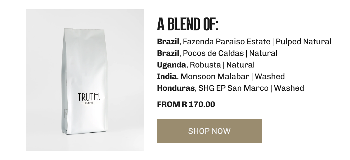 At R170, this is an investment in your daily ritual. No gimmicks, no over-roasting to hide bad beans, just expertly sourced coffee that knows exactly what it is — a cup with character.
