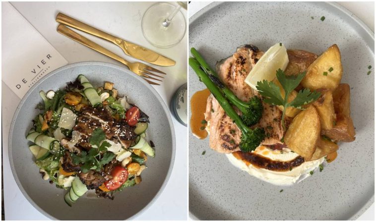 - Opting for a lighter option? The grilled chicken thigh salad offers a refreshing combination of flavors with lettuce, tomato, cucumber, dried pear, toasted cashews, and parmesan shavings, all dressed in De Vier’s vinaigrette, priced at R145.