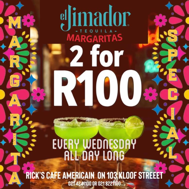 Guests can enjoy two margaritas made with El Jimador Blanco tequila for just R100, available all day long.