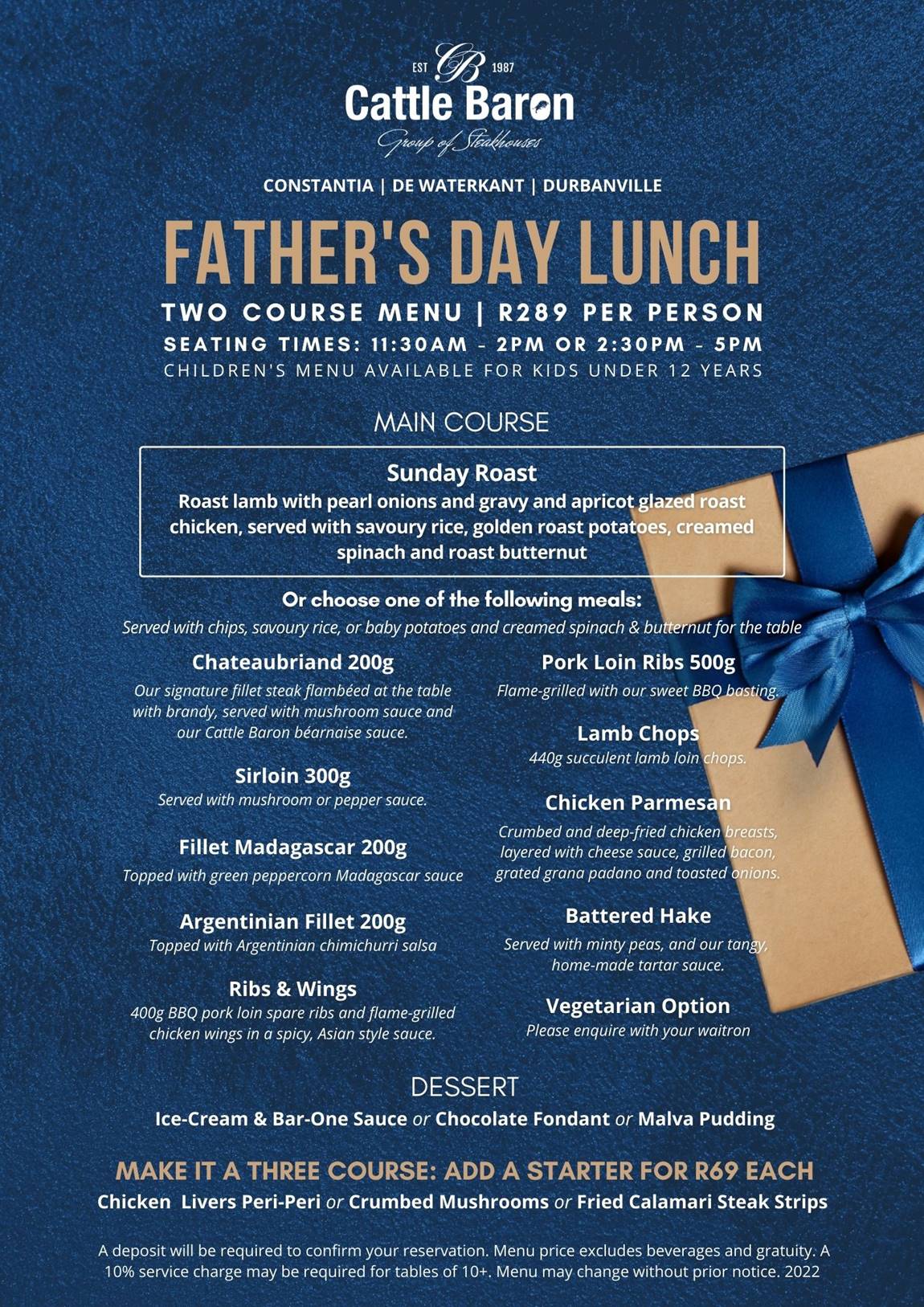 Visit their website to find your nearest Cattle Baron Steakhouse to find out more on their Father’s Day offerings.