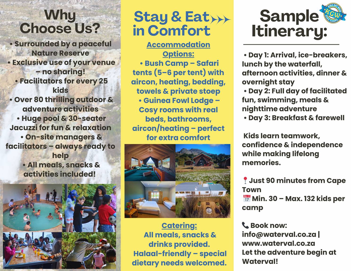 Waterval doesn’t just fuel the fun—they feed it. All meals, snacks, and drinks are included, with Halaal-friendly catering and dietary needs happily handled. So whether your camper is a picky eater or an adventurous one, they’ll be covered (and full).