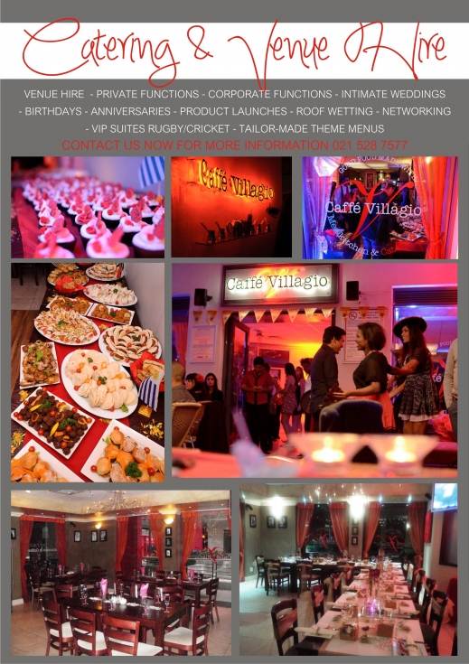 Caffé Villagio is a Mediterranean coffee shop-restaurant situated in Sable Square Mall, on the border of Century City, and trades 7 days a week, offering an extensive all-day-breakfast range and specialises in Mediterranean cuisine such as shwarma (lamb, pork and chicken), homemade pastries, meze (tapas) and sweets. Caffé Villagio is a finalist in the CapeTalk-Softline Pastel Small Business Awards 2011.