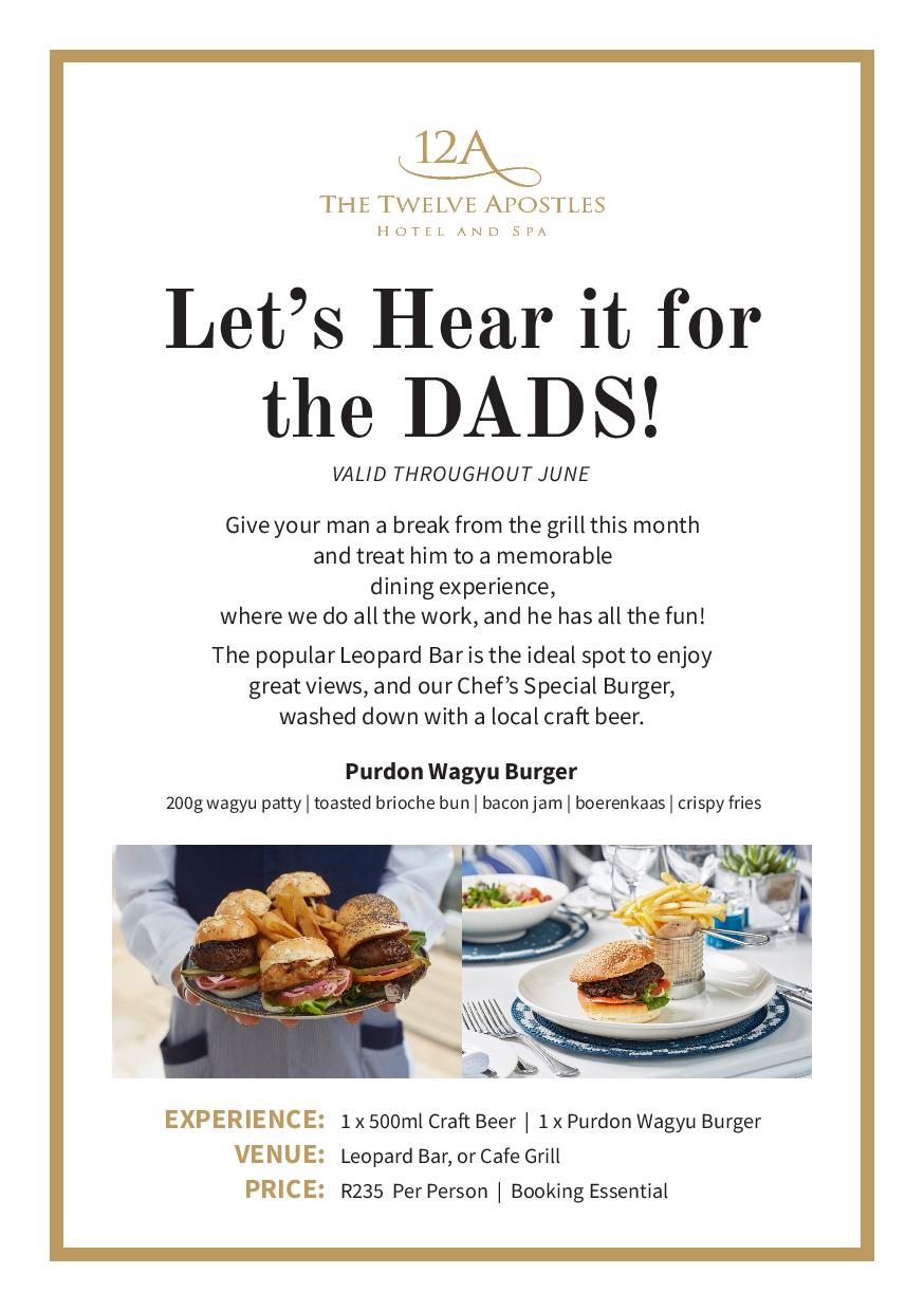 To ensure that you don’t miss out on this delectable offer, bookings are essential. The June Burger special at the 12 Apostles Hotel & Spa is bound to be popular, so securing your reservation will guarantee a table for your dad’s special day.
