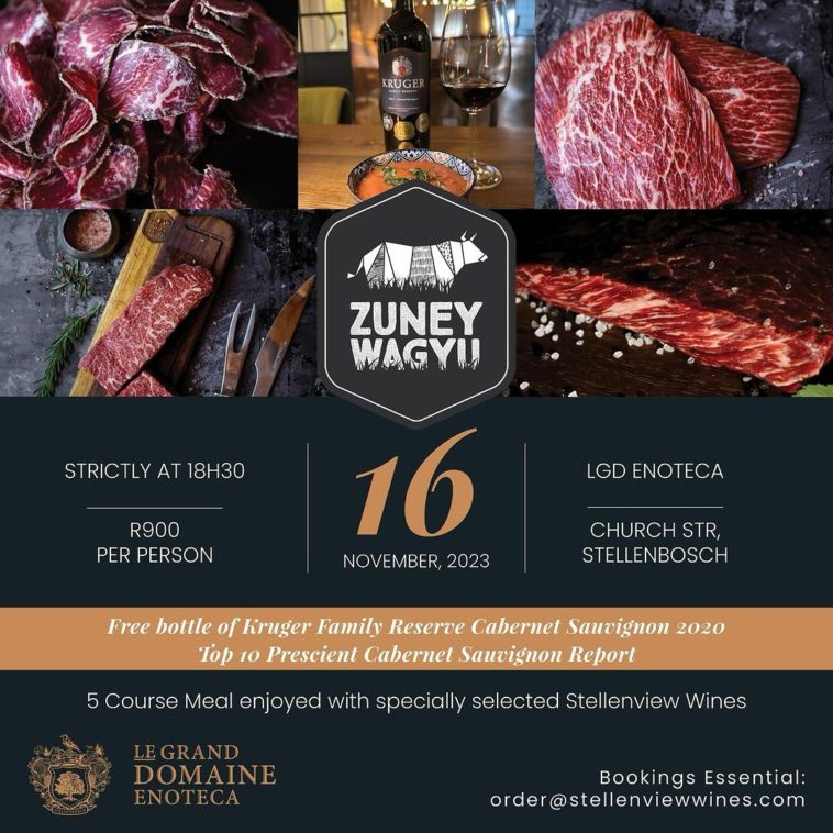 - Prepare to embark on a journey through five Wagyu cuts that have been expertly combined with five intermediate palate cleansers, and accompanied by five exquisite Stellenview Premium Red Wines. Your reservation includes a complimentary bottle of the Kruger Family Reserve Cabernet Sauvignon 2020, a true gem among wines and a Top 10 Prescient Cabernet Sauvignon Report honoree.
