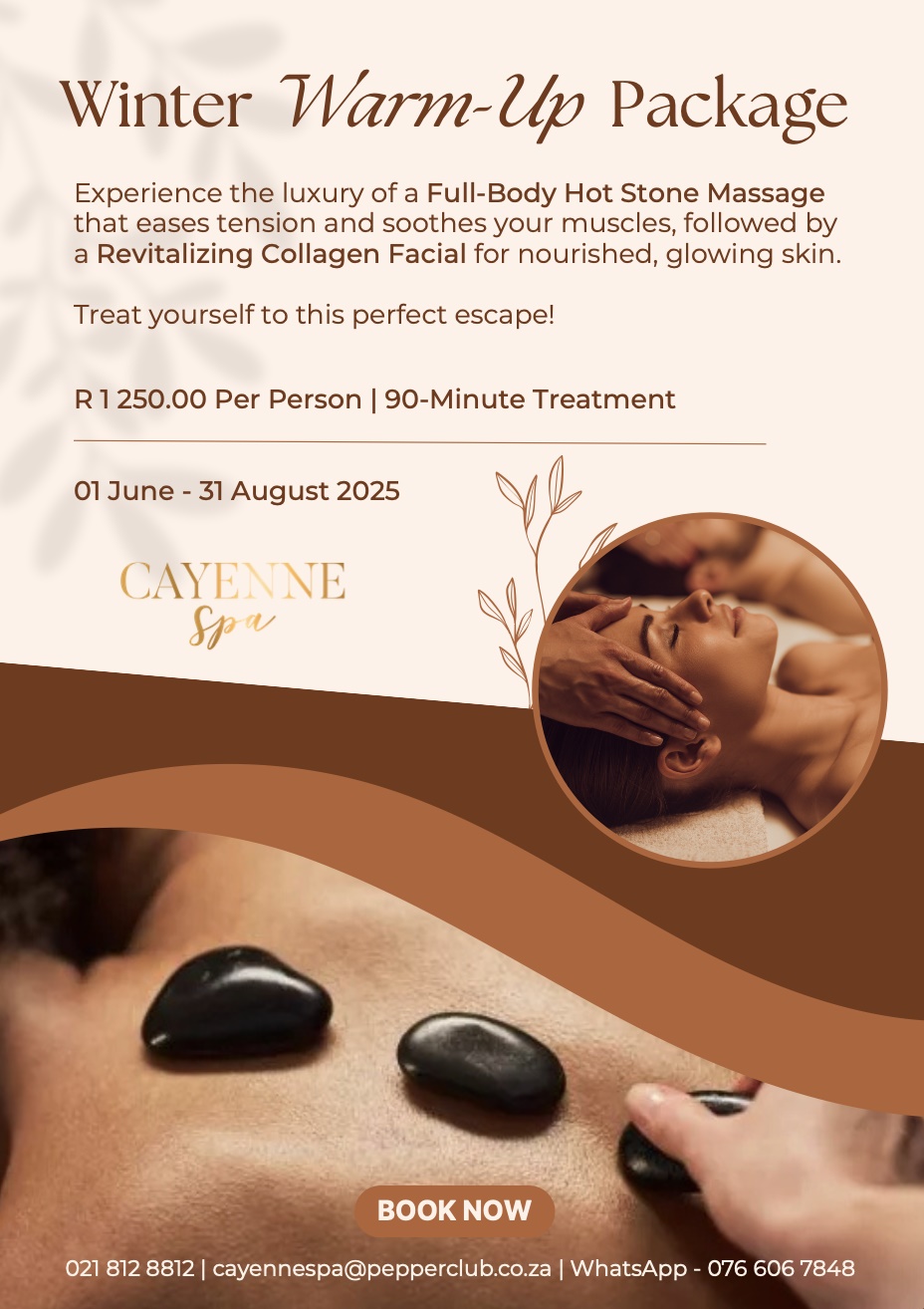 While Cape Town’s winter might bring chilly mornings and early sunsets, Cayenne Spa at the Pepperclub Hotel is here to melt the frost with a limited-time treat designed to warm your body and soul.