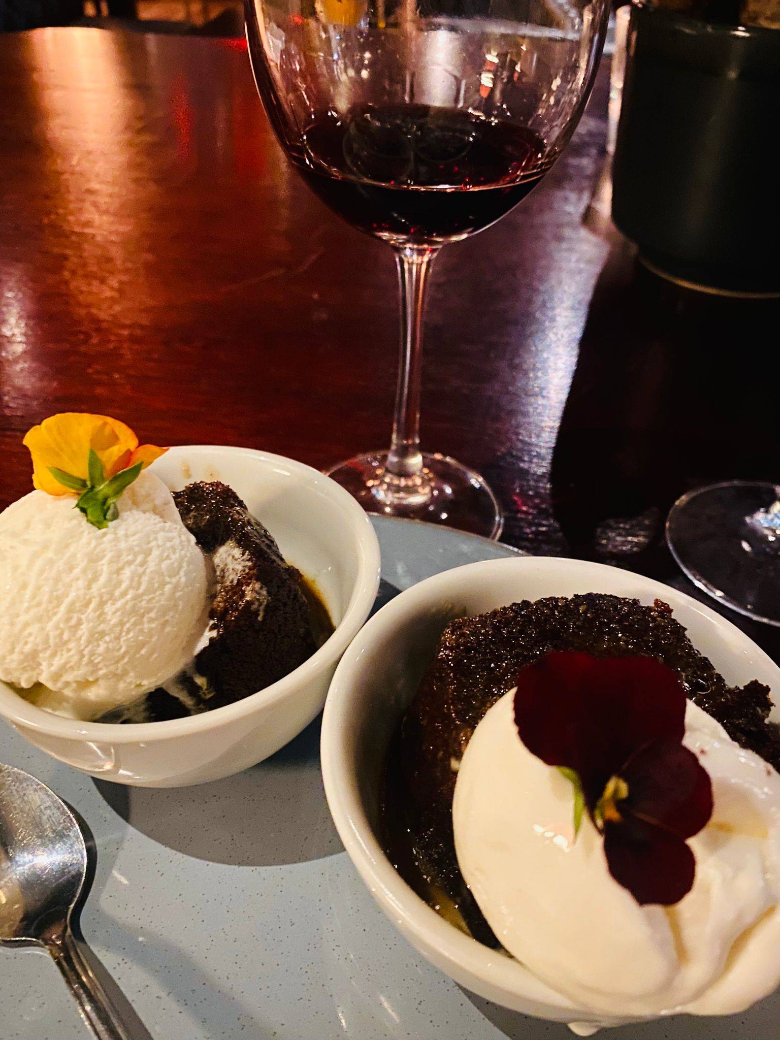 Rich. Dark. Dreamy. The pudding is deep in flavour—molasses, spice, and a slightly crunchy edge—crowned with velvety vanilla bean ice cream that melts into the warm sauce like a love letter. Garnished with edible flowers, it’s indulgent without being over the top. Plaisir Merlot was the winner here. Soft tannins and lush plum undertones wrapped the dessert in a warm, sultry hug.