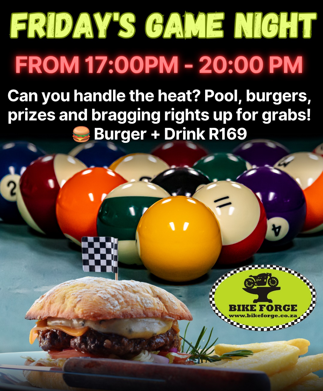 So whether you’re a pool shark or just in it for the patties, Friday nights at Bike Forge are your go-to for good food, great company, and a shot at victory.