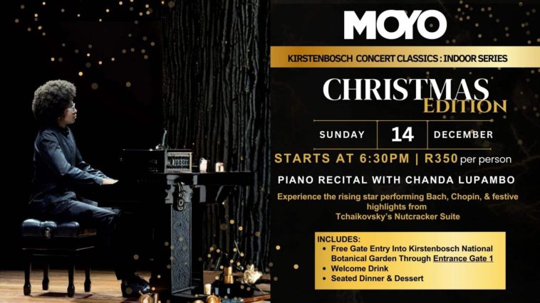 MOYO Kirstenbosch is turning up the seasonal sparkle this year with its Concert Classics: Indoor Series – Christmas Edition, featuring rising piano star Chanda Lupambo. It’s an evening made for anyone who believes good food and good music are best enjoyed together.