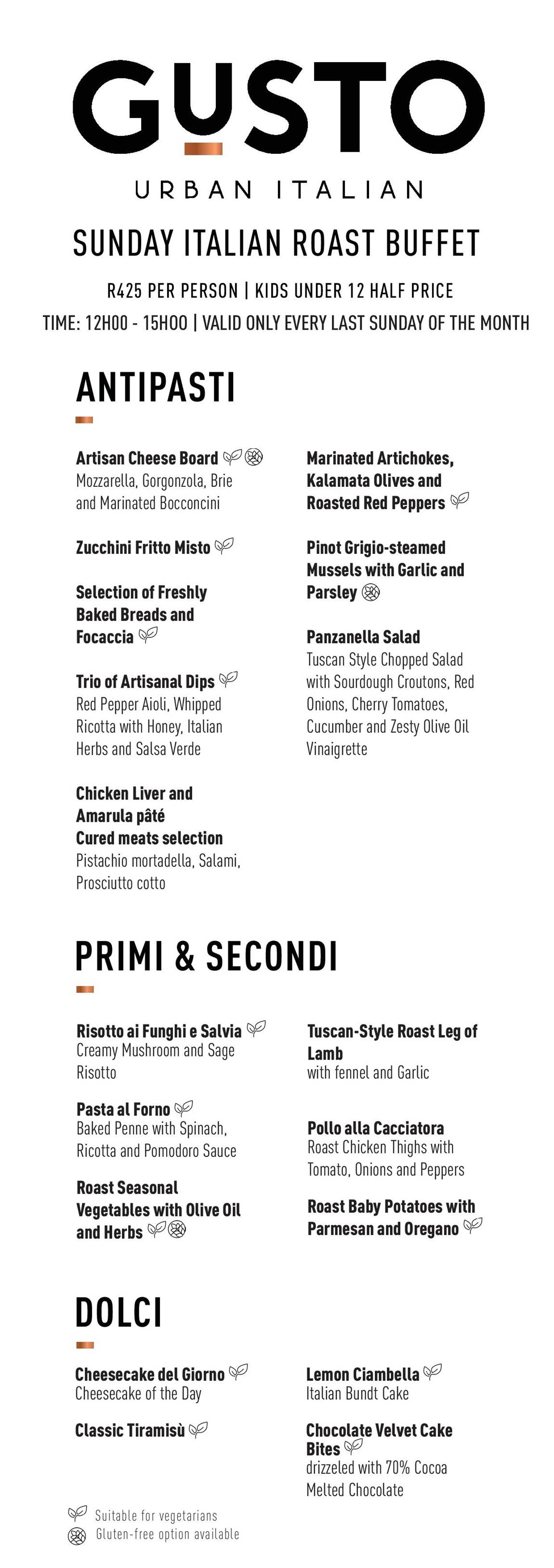At R425 per person, with kids under 12 at half price, it’s a offering that works just as well for families as it does for long, social lunches with friends. Good food, plenty of choice, and time to enjoy it. At Gusto, Sunday lunch isn’t rushed. It’s something to settle into.