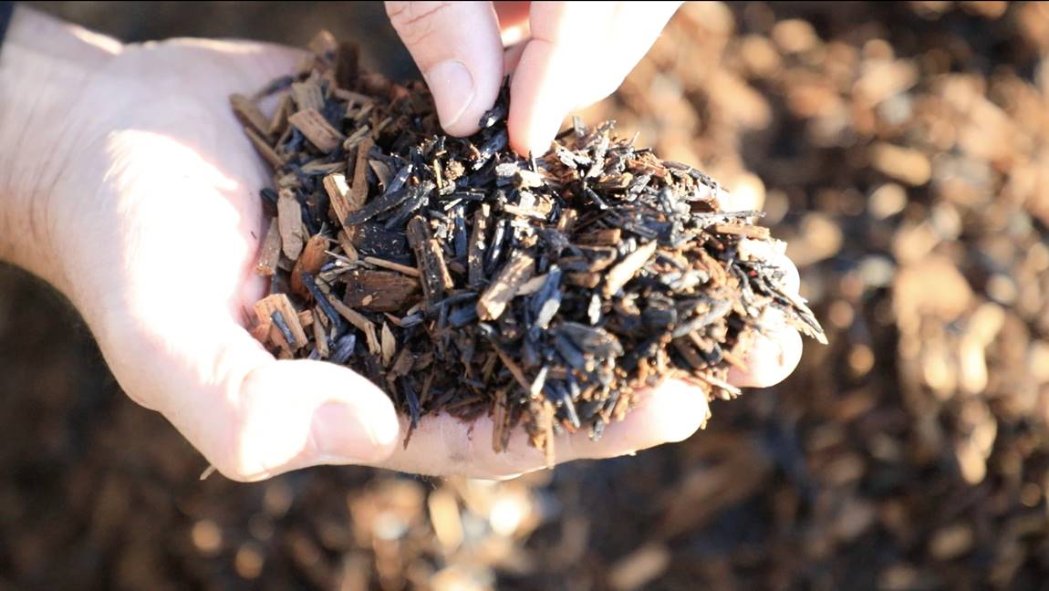 Biochar is made in a process called pyrolysis in which the plant material, usually agricultural biomass (plant and/or animal waste), together with staves or wood chips from no longer used wine barrels, is charred in a low oxygen environment at very high temperatures that exceed 400 degrees Celsius.