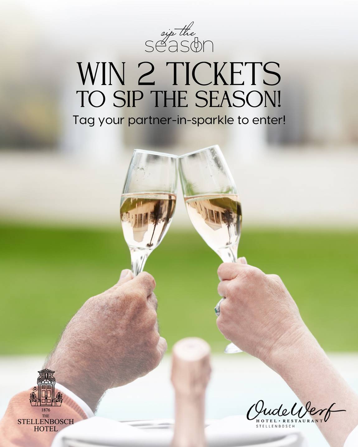- Sip the Season takes place on Saturday, 6 September 2025, from 12:00 to 15:00, and it’s set to be a celebration of everything we love about spring: fine wine, fresh flavours, and a feel-good vibe. Guests will float between the two iconic venues—Oude Werf and Stellenbosch Hotel—sampling MCCs, snacking on seasonal plates, and soaking up the sounds of live entertainment.